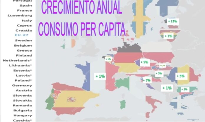 En cuanto a los países de la UE donde el consumo per cápita ha crecido: