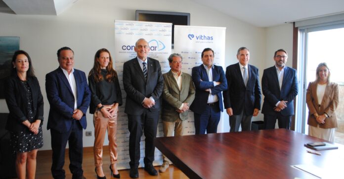 Manuel Reigosa Roger, en un acto en el que también estuvieron presentes, la directora general de Conxemar, Yobana Bermúdez, el gerente de Vithas en Vigo, Dr. Ciro Cabezas; y el decano de la Facultad de Medicina de la Universidad CEU San Pablo de Madrid, Pedro Chivato. También estuvieron presentes el director corporativo de Asistencia, Calidad, Innovación y Docencia de Vithas y vicepresidente de la Fundación Vithas, Dr. David Baulenas; la coordinadora de las investigaciones de Vithas y Conxemar, la Dra. Idoya Sanluis; y la responsable Comercial y de Experiencia Paciente de Vithas Vigo, Catalina Lamas.