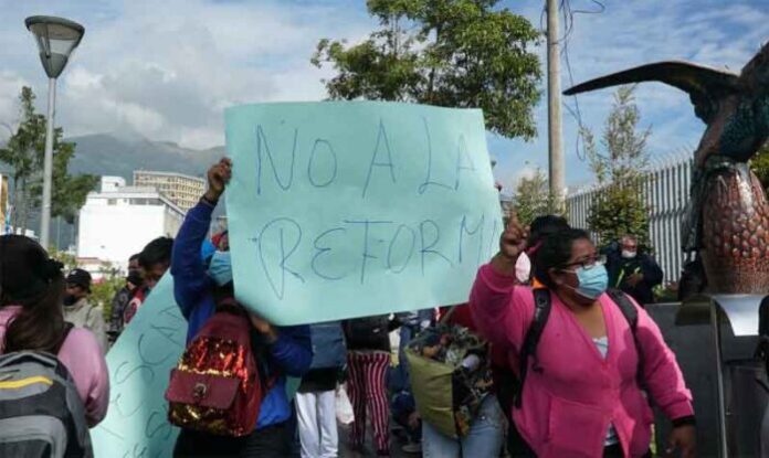 Pescadores artesanales se manifestaron este 1 de diciembre de 2021 en contra de la reforma a la Ley de Pesca. Grupos a favor y en contra de una reforma planteada por el anterior Gobierno a la Ley de Pesca se concentraron este miércoles 1 de diciembre de 2021 ante la Asamblea Nacional, en Quito, donde plantearon sus posiciones respecto a las modificaciones que el Legislativo tiene previsto analizar.
