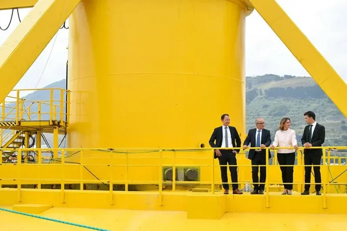 En el acto también estuvo presente la plana mayor del puerto de Bilbao, con su presidente, Ricardo Barkala, el director, Carlos Alzaga y el director de operaciones, comercial y logística, Andima Ormaetxe. Por la parte institucional, el delegado y subdelegado del Gobierno, Denis Itxaso y Vicente Reyes, respectivamente, mientras por la empresa acudieron Javier Urgoiti, director general de Saitec; Martin Dörnhöfer, director of Floating, Hydrogen, Development Optimization de RWE Renewables; David Carrascosa, director de operaciones de Saitec Offshore Technologies; y Araceli Martínez, directora técnica de Saitec Offshore Technologies, entre otros.