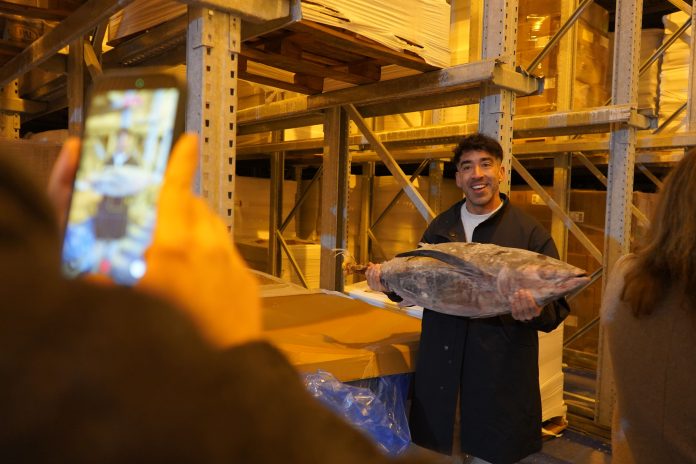 La experiencia comenzó en los espacios clave del puerto bermeano: la Cofradía de Pescadores, la Lonja y la planta de congelación, donde los invitados pudieron conocer el día a día de la actividad pesquera, el funcionamiento de las subastas y la organización del trabajo en torno a una especie que es emblema de Euskadi. Desde allí, el recorrido se trasladó a la histórica conservera Serrats, símbolo de la transformación y del arraigo industrial de Bermeo al producto del mar.
