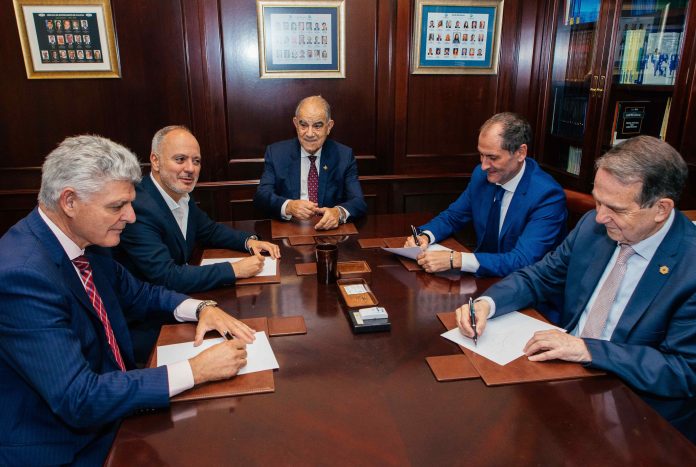 Coincidiendo con la celebración del Comité Ejecutivo de Navalia, el nuevo presidente de la AINE; Luis Guerrero, mantuvo un encuentro con Abel Caballero, alcalde de Vigo y presidente del Consorcio y David Regades, delegado del Estado de la ZFV, para concretarlos plazos de este espacio tan destacado en la feria.