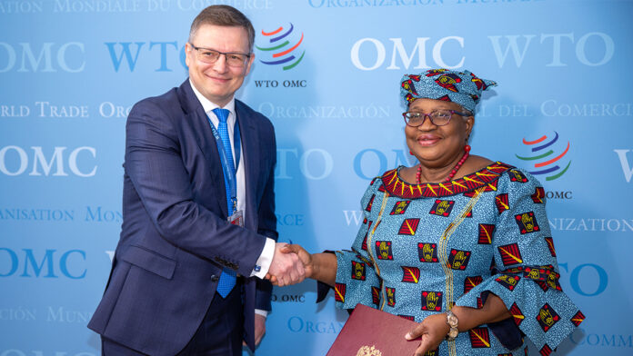 La Federación de Rusia depositó su instrumento de aceptación del Acuerdo sobre Subvenciones a la Pesca el 18 de marzo. El Embajador Nikolai Platonov presentó el instrumento de aceptación de Rusia a la Directora General Ngozi Okonjo-Iweala.