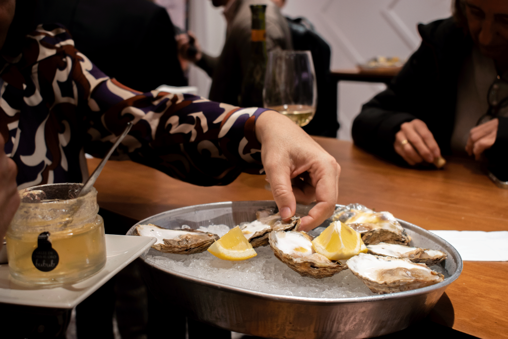 Para finalizar, los casi 30 asistentes al evento pudieron disfrutar de un Showcooking en directo a cargo de Puri Gambero, especializada en la elaboración de productos pesqueros y dinamizado por José Antonio González Villaverde, pescadero profesional en el que los protagonistas fueron los productos pesqueros. Tras este showcooking, los asistentes pudieron degustar las elaboraciones presentadas en el showcooking, que constaron de una original “ensaladilla marinera de centollo”, un “carpaccio cítrico de atún”, una espectacular “tortilla de ajetes y bacalao” y por último una “ostra al cava y oro” todo ello acompañado de un estupendo vino blanco afrutado. Esta Jornada destacó la relevancia de los mercados y tiendas locales al incorporar ingredientes de otros puestos del mercado en el showcooking, resaltando así la importancia de la colaboración y la comunidad en la experiencia culinaria.