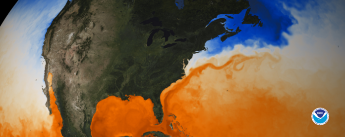 Los científicos de la National Centers for Environmental Information (NOAA) estudian la influencia de varios factores, incluido el contenido de calor del océano, sobre la Corriente del Golfo (GS),en el Océano Atlántico Norte, en el que no aprecian riesgos de colapso como algunos estudios están difundiendo desde universidades europeas.