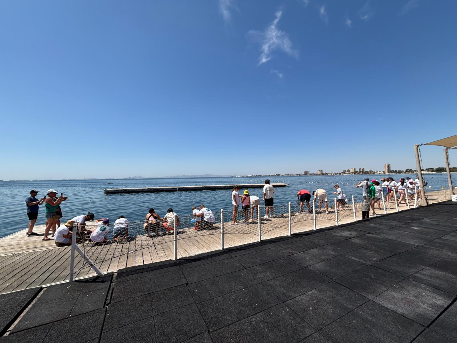 Más de 30 familias participan en la «Jardinería de ostras» para conocer el papel de estos bivalvos en el Mar Menor