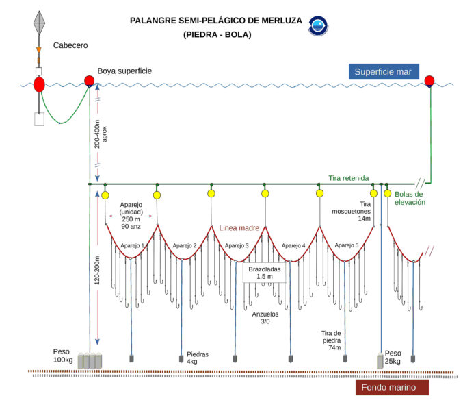 Los resultados obtenidos indican que el palangre utilizado por la flota burelesa es un palangre demersal o semipelágico tipo «piedra-bola» que está dirigido a la merluza adulta y tiene contacto muy reducido con el fondo marino. En 2024, se continuará el muestreo para clarificar si este sistema de pesca pone o no en riesgo la conservación de los fondos y con ellos solicitar una exención en la norma que permita la pesca en las áreas vedadas, como ocurre con otras artes de pesca de tipo pelágico.