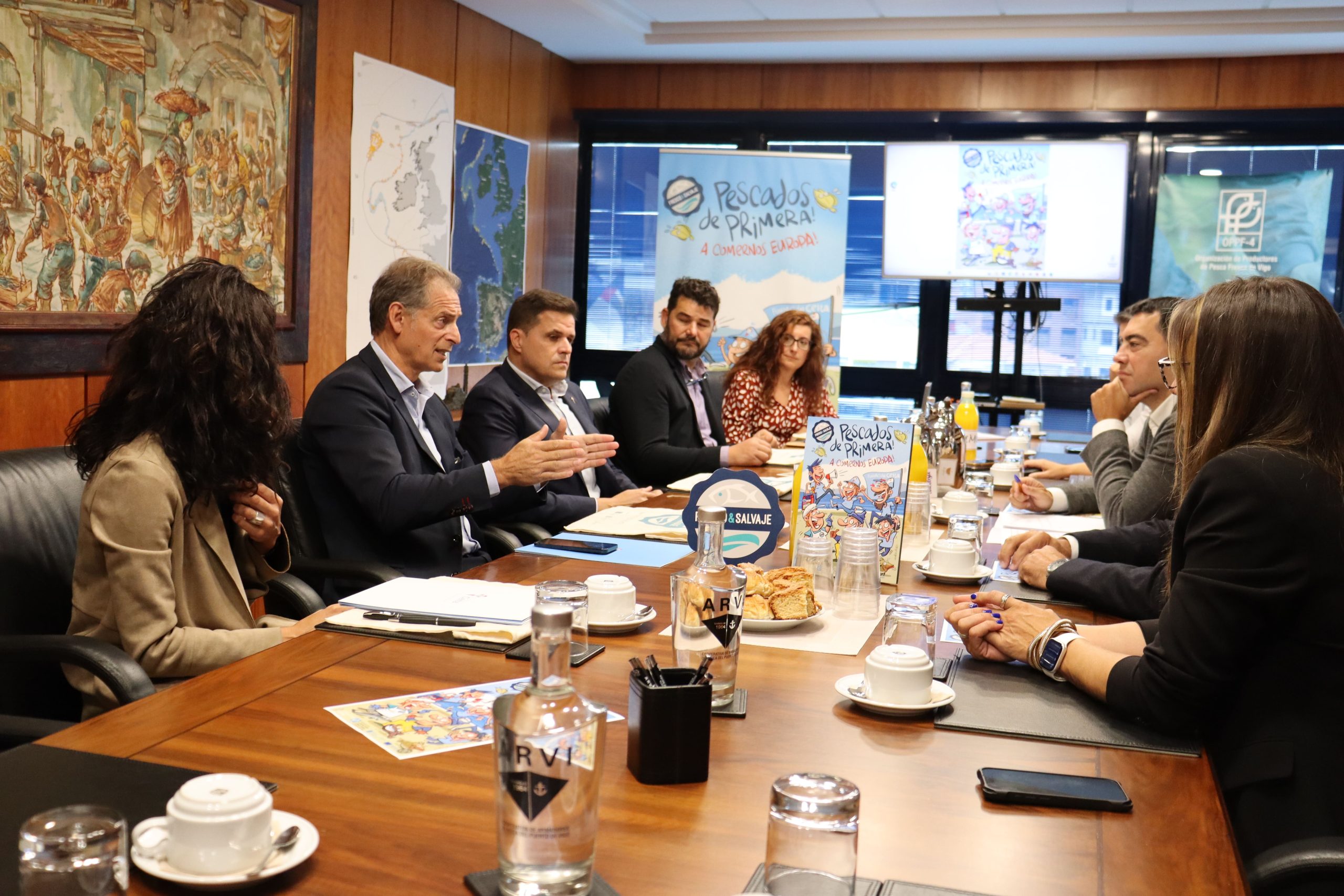 La firma del convenio se enmarcó en una visita a las instalaciones de la Cooperativa de Armadores de Pesca del Puerto de Vigo (ARVI). Durante el encuentro, los asistentes, pudieron conocer de primera mano las funciones que desempaña la cooperativa dentro del puerto, así como la labor de la OPPF-4 en la promoción y valorización del pescado fresco de origen salvaje. Previo a la firma oficial del convenio, se realizó una presentación de la organización y sus principales actividades. El acto contó con la participación de Daniel Castro Gordejuela, presidente de la OPPF-4; Edelmiro Ulloa Alonso, director gerente de la OPPF-4; Germán Arteta Torres, director Fundación Celta; Alberto García, patrono Fundación Celta; Lidia Caride, directora de proyectos Fundación Celta; representantes de ACOPEVI, así como otros invitados vinculados al sector pesquero y deportivo de la ciudad.