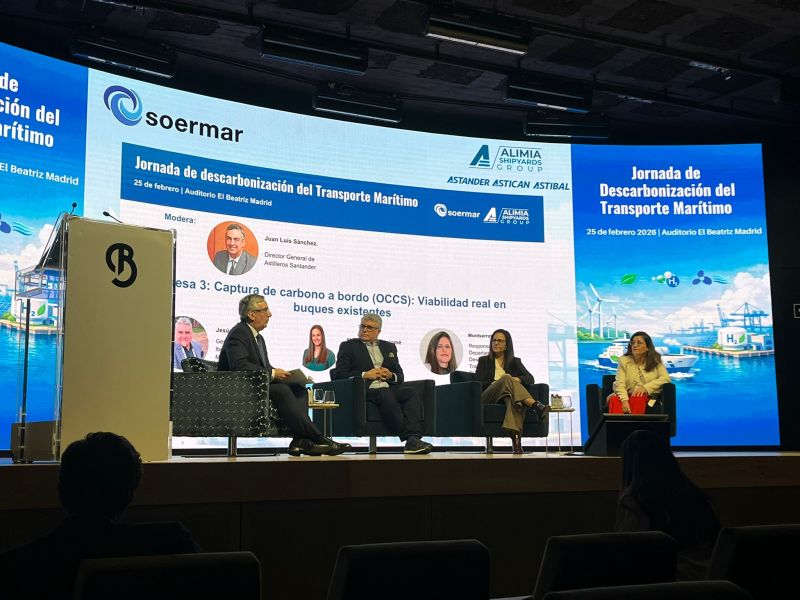 La descarbonización del transporte marítimo ya no se discute en términos de intención, sino de decisiones técnicas y capacidad de ejecución. Ese fue el tono dominante de la jornada “Descarbonización del Transporte Marítimo”, organizada por Soermar en colaboración con Alimia Shipyards Group (Astican, Astander y Astibal) y celebrada en el Auditorio El Beatriz (Madrid), con la participación de Administración, armadores, astilleros, suministradores, tecnólogos y sociedades de clasificación.
