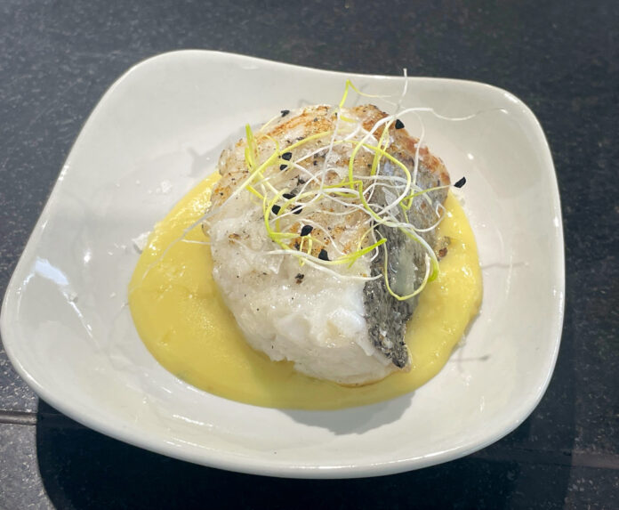 Alvar Hinojal se lució con tres recetas elaboradas con «Peixe de Burela», exhibiendo la calidad y la frescura de los pescados de esta lonja y haciendo las delicias de los comensales: «Merluza de Burela al estilo ibérico más tradicional, con jamón, judías y algas», «Merluza de Burela frita estilo chifa» y «Jurel curado con ajoblanco de anacardos».